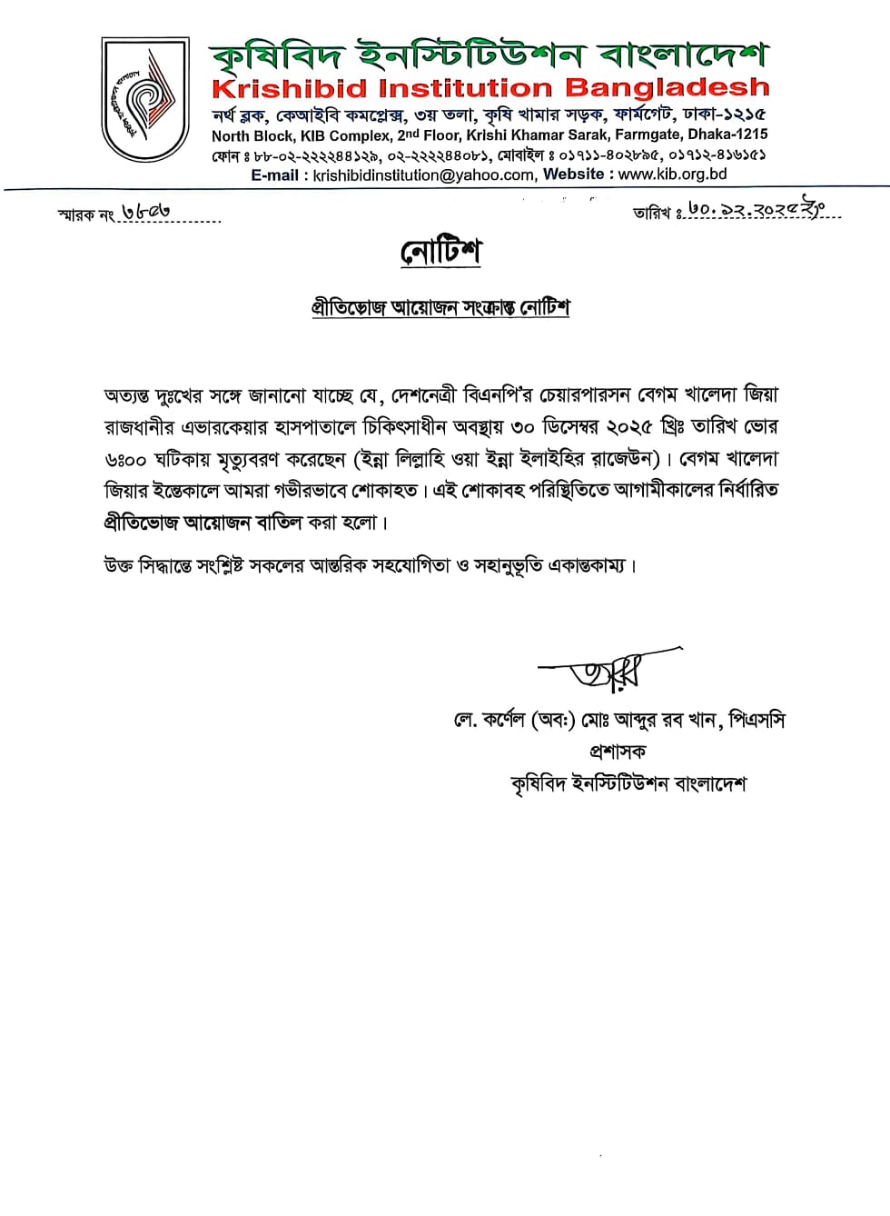 প্রীতিভোজ বাতিল প্রসঙ্গে